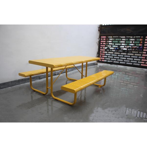 Rectangular Steel Outdoor Picnic Table Set With Surface Mount Type Images |